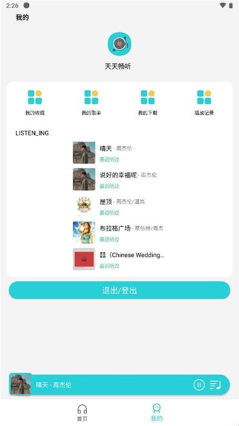 4、之后我们点击我的,里面提供我的收藏、歌单、下载、播放记录等功能;