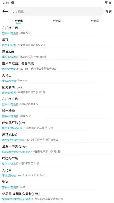 2、如果你有自己想要搜索的歌曲,我们可以点击搜索框,输入你想要的关键字,里面会为用户提供海量带关键字的音乐,如果还没有找到你想要的歌曲的话,可以切换另一个路线哦