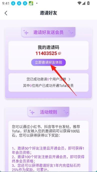 3、然后直接点击“立即邀请好友体验”,如图所示。