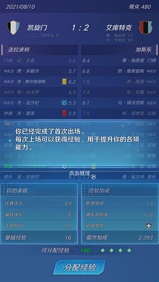 4、球员模式下的比赛过程会被简略,出场后会自动计算比赛结果,每场比赛结束后还可获得经验。