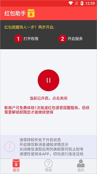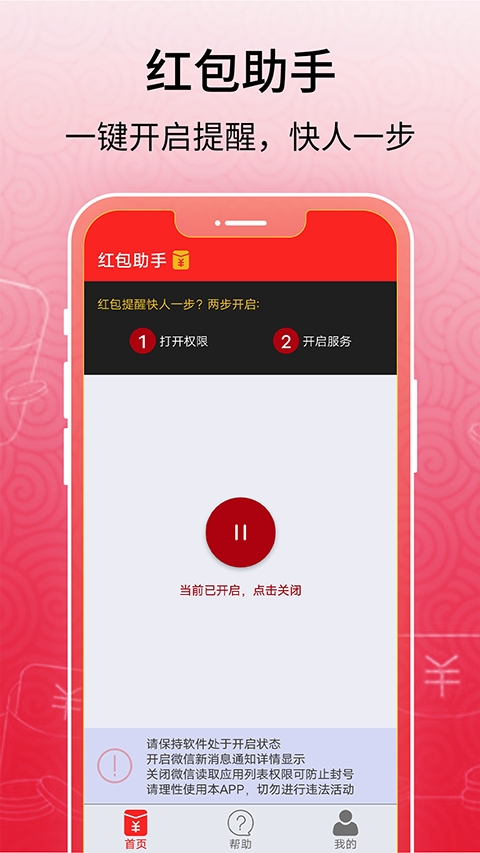 1、荣耀红包助手是您抢红包的神器。