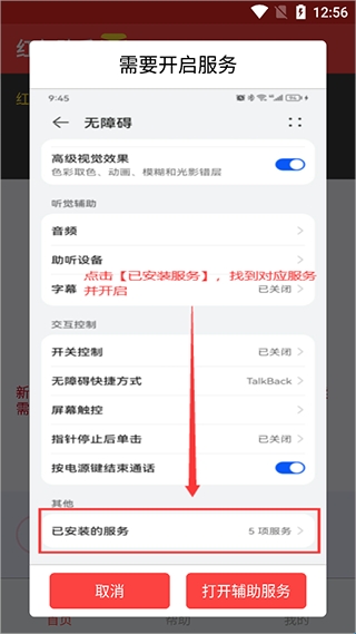 3、然后返回首页再次点击开启状态按钮,接着按照页面操作说明,点击【打开辅助服务】
