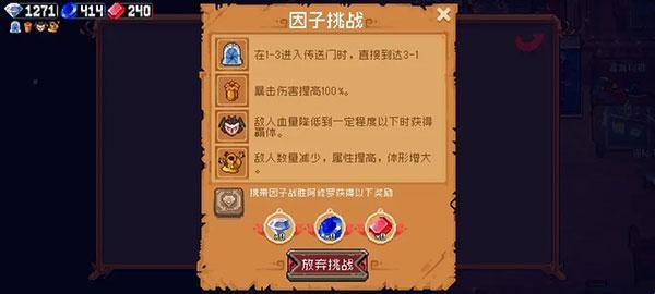 4、刷个好用的因子,因子要有跳关+敌人数量减少+暴击伤害/技能伤害提高。跳关:减少速通时间;敌人数量减少: 增加红石,暴击伤害/技能伤害提高: 减少战斗所需时间,从而加快通关。