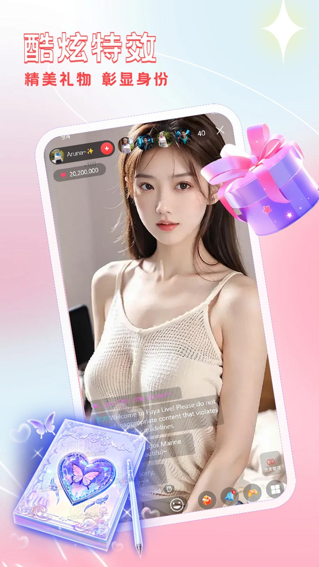 3、实时互动:支持弹幕、点赞等方式与名媛互动,增强用户参与感。
