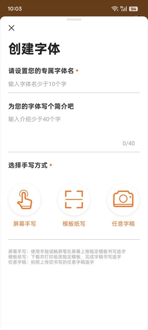 2、这里有3种创建字体的方式(屏幕手写、扫描、任意字稿)