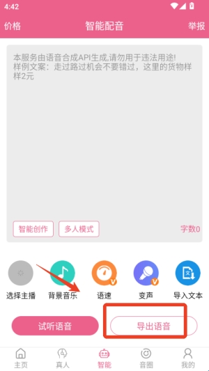 4、内置智能AI文字变音功能,输入文字后自动转换成为语音内容;