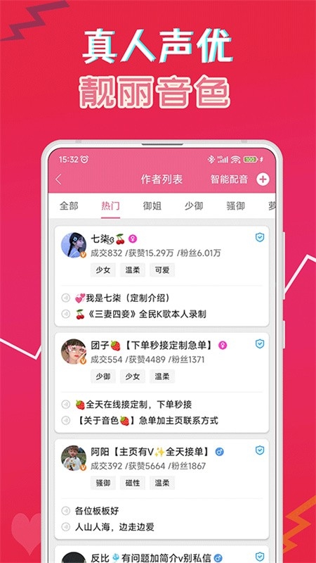 4、陪玩功能,几千位声优陪玩在线等待您的到来,不管是专业陪玩还是陪玩,都能满足你的需求