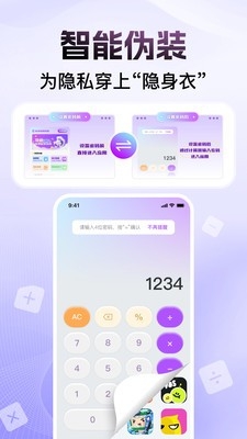 应用界面伪装成计算器、拨号等工具,输入预设密码,进入真实界面。