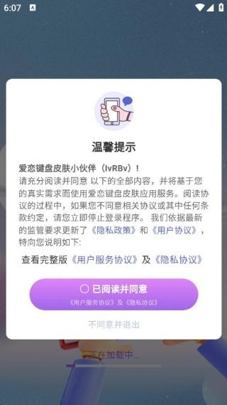 1、下载并安装软件,点击已阅读并同意即可开启浪漫指尖之旅。
