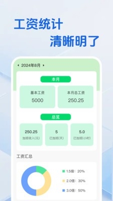 自动生成完整的月度收入分析报告,显示加班天数、总小时数和工资明细。
