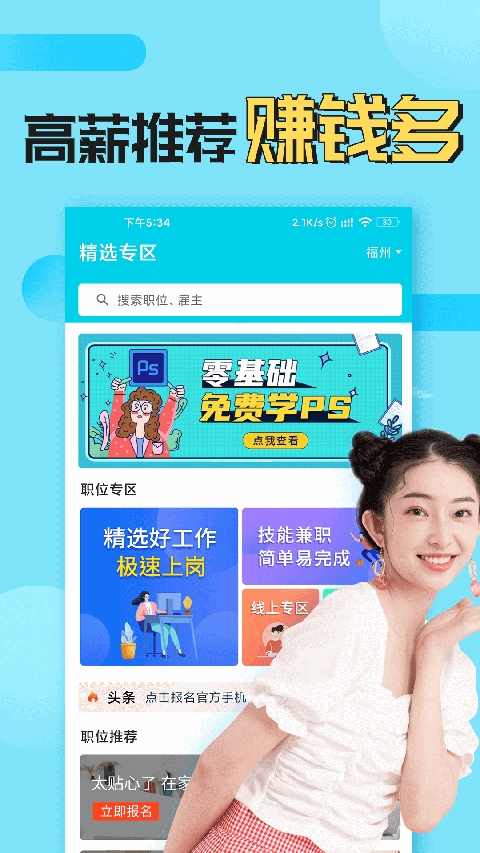 1、海量兼职岗位:快速报名,就近上岗。