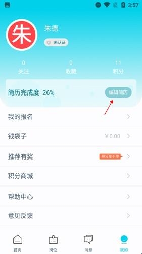 3、点击中间的认证即可编辑自己的信息。