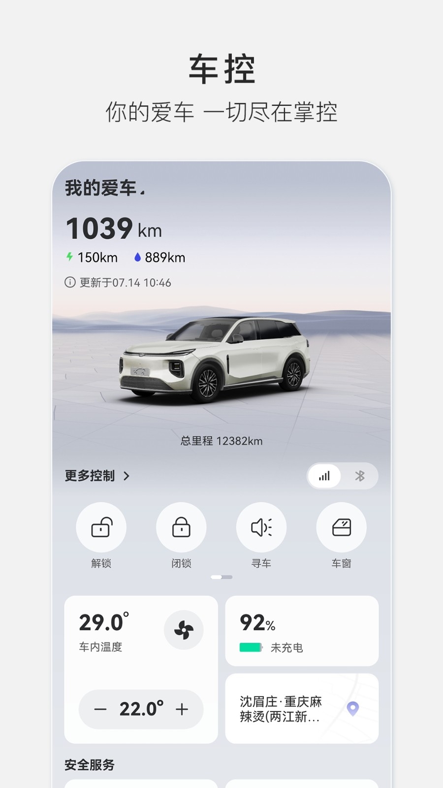 2. 车控功能涵盖门锁、空调、电池状态、定位追踪等常用操作,随时掌控车辆状态。