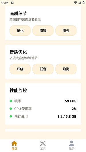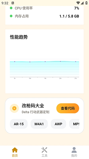 1、打开App后,您会看到主界面。这里提供了多种画质调整模块(如GFX动感、画质设置等)。根据您的需求,点击任意一个模块下方的【运行】按钮。