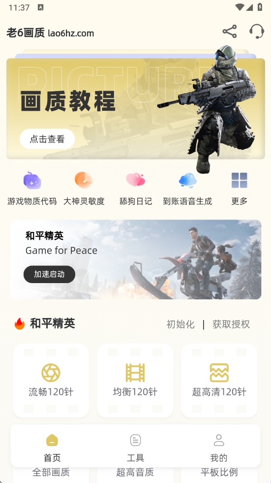 1、下载安装老六画质助手app,之后打开,进入主页;