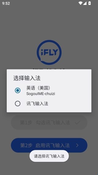 1、打开下载好的app,点击进入,选择第一步勾选讯飞输入法。