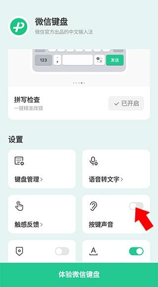 1、下载并打开微信输入法软件,调出微信输入法的输入界面,并点击键盘按键上方的绿色按钮