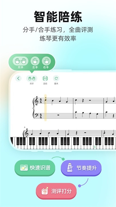 3、智能推荐算法会根据使用者的弹奏水平和音乐喜好,为使用者提供最合适的乐谱和教学资源。