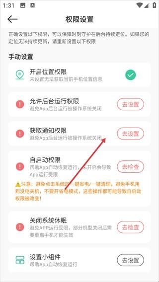 2、进入【权限设置】页面,点击【获取通知权限】。