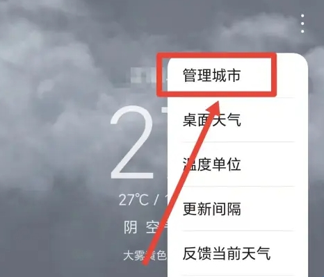 1、打开手机天气页面,点击界面右上角的四点菜单图标;