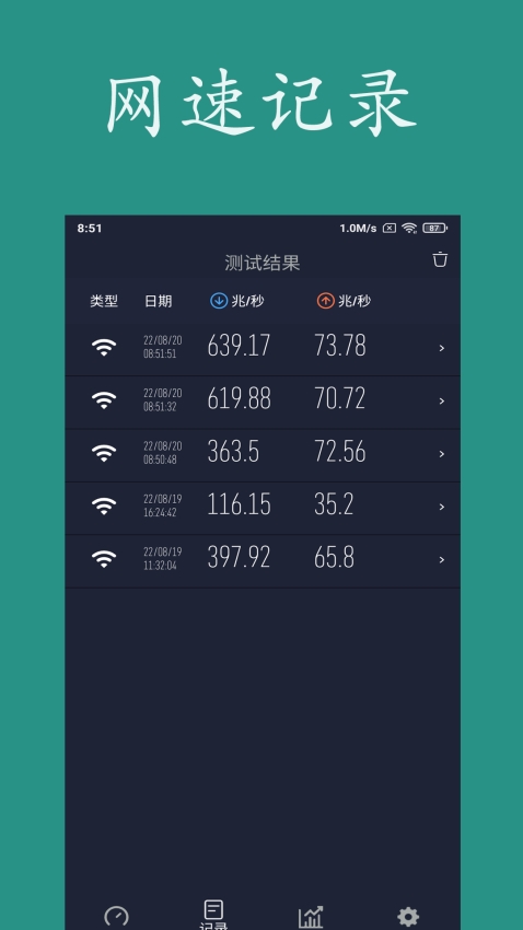 3、历史记录:自动保存测试记录,方便用户随时查看和对比网络速度变化。