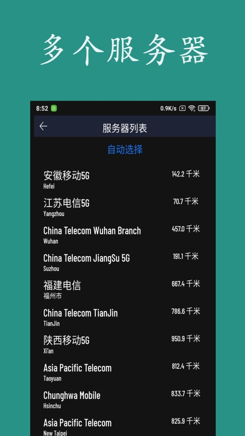 4、多服务器选择:支持选择不同地区的服务器进行测试,帮助用户了解跨地域网络连接的稳定性。