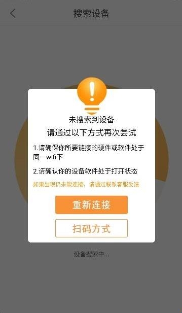 3、设备搜索中,当搜索到电视设备之后,选中设备即可连接成功。