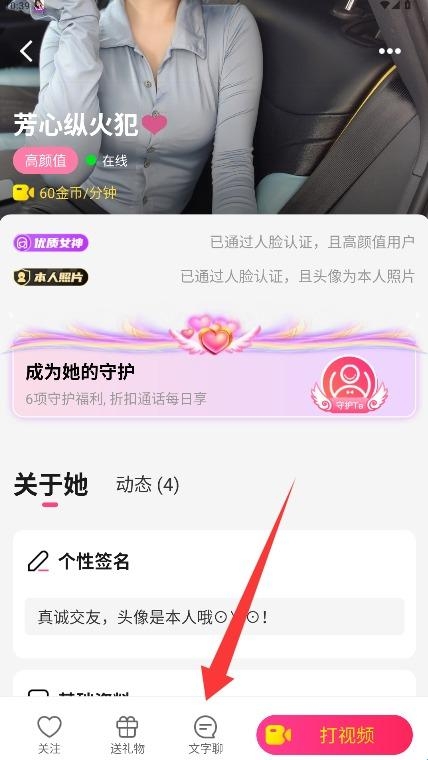 4、进入用户个人主页可查看基本信息,点击文字聊功能即可与对方进行实时沟通。