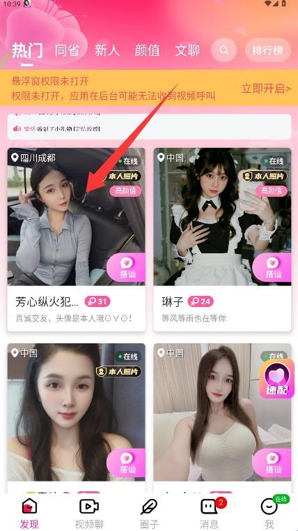 3、在发现页面浏览系统推荐的用户列表,选择感兴趣的用户点击查看详细资料。
