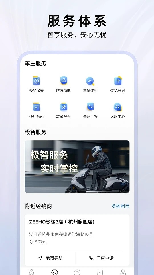 ZEEHO极核APP是浙江春风动力股份有限公司为旗下高端电动摩托车品牌ZEEHO量身打造的智能车机互联平台。作为连接用户与电动摩托车的核心工具,该应用集车辆管理、社交互动、在线购物于一体,通过智能化技术为用户提供“人-车-生活”全场景服务。用户可通过APP实时掌握车辆状态、远程控制功能,并参与车友社群活动,享受科技赋能的绿色出行体验。
