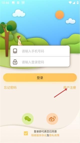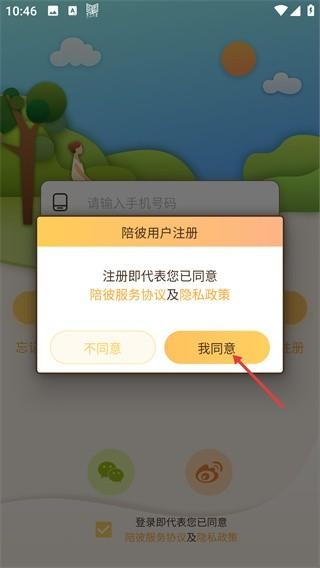1、进入登录界面,找到【用户注册】选项并点击,触发注册协议确认弹窗,开启应用注册的流程。