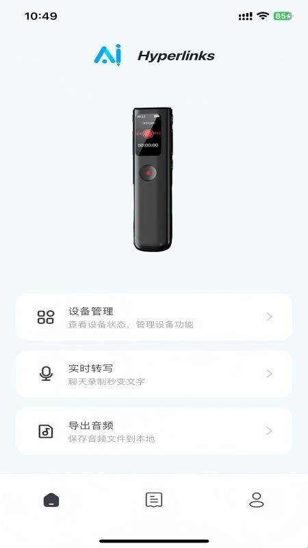 3、界面设计简洁直观,功能布局清晰,用户可轻松查找设备管理转写导出等功能,带来舒适的视觉与操作体验。