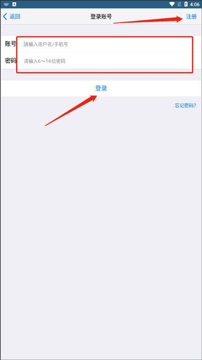 1、在本站下载安装运行软件,使用用户名/手机号+加密码登入,新用户需要点击右上方的注册: