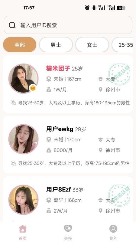 3、所有注册用户需通过身份认证,平台采用严谨的审批流程,确保每一位用户都是真实存在的单身男女。