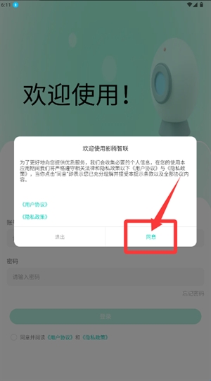 1、在协议提示界面点击同意按钮,完成条款确认操作。