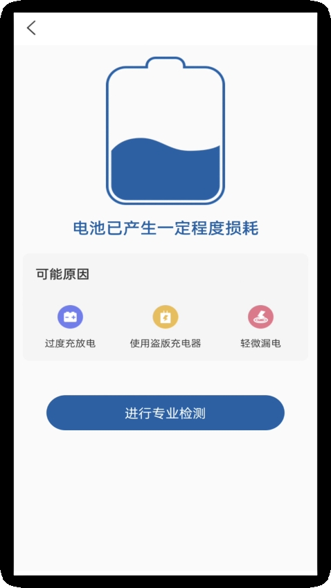 展示了关于手机电池的耗电原因,用户可以实时查看,轻松获取原因的参考。