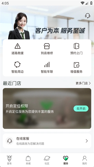 4、提供很多用车服务,包含道路救援、到店维修、预约上门、智能车联等服务。