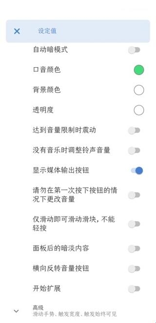 4、如果你不喜欢当前音量面板皮肤的皮肤颜色及其他,还可以点击设定值,进行相关的设置。