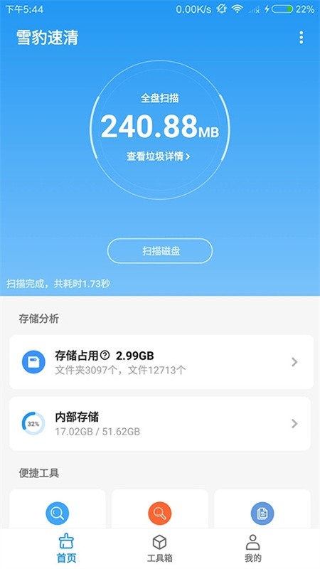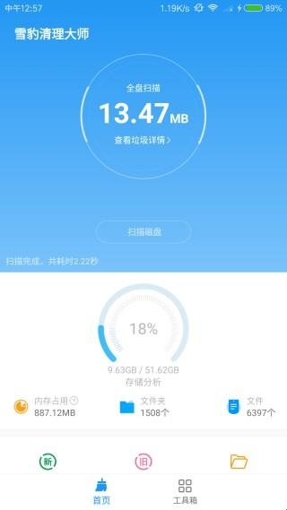 雪豹速清app是一款可以直接的让你获取更加简单以及便捷的手机内存优化类型软件,在这款软件之中可以直接的让手机远离各种垃圾文件以及垃圾的数据,操作相当强大的同时直接的做到全盘的扫描。雪豹速清app之中不管是空文件夹还是大文件或者是新文件等等,都可以直接的获取其中的内容,了解到不一样的功能,完美的解开各种文件之中数据扫描,删除那些内存以及不需要的文件哦。