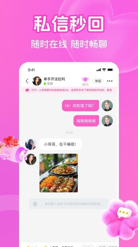 3、在线陪伴丰富聊天体验,畅玩趣味话题,陌生语聊体验,聊天流畅,快来一起聊呗;