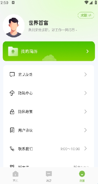 3、操作简单便捷,全程服务省心高效:应用采用极简设计,核心功能一目了然。从浏览岗位、在线沟通到报名申请,流程简单顺畅。同时提供完善的简历管理与企业信用查询功能,助您高效管理求职进度。
