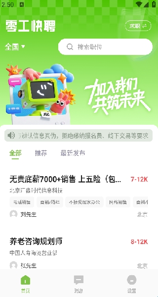 2、招聘者可免费在软件上发布岗位,附近求职者实时推送,快速响应你的招聘需求;