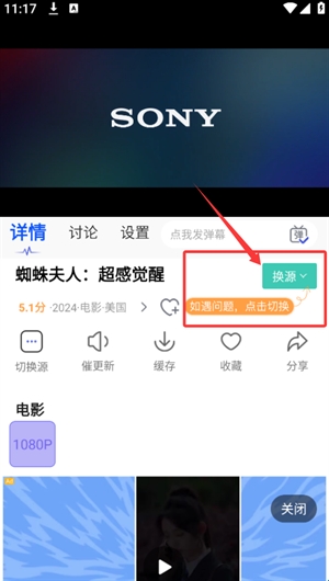 3、播放页设有切换片源功能,当播放异常时可尝试更换线路。