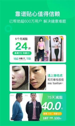 2、减脂计划:自由定制瘦身计划,分析体重变化数据和统计时间,帮助用户快速健康减肥