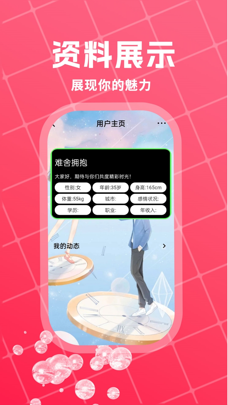 3、采用即时通知机制,每当新匹配悄然而至,用户都能第一时间收获温馨提醒,确保每一次相遇都不再错过,让缘分紧紧相连。