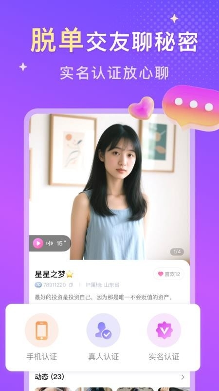 1、强调用户信息的真实性,通过多重认证机制和视频交友功能,打造真实、可靠的社交环境,让用户在真实的基础上建立连接。