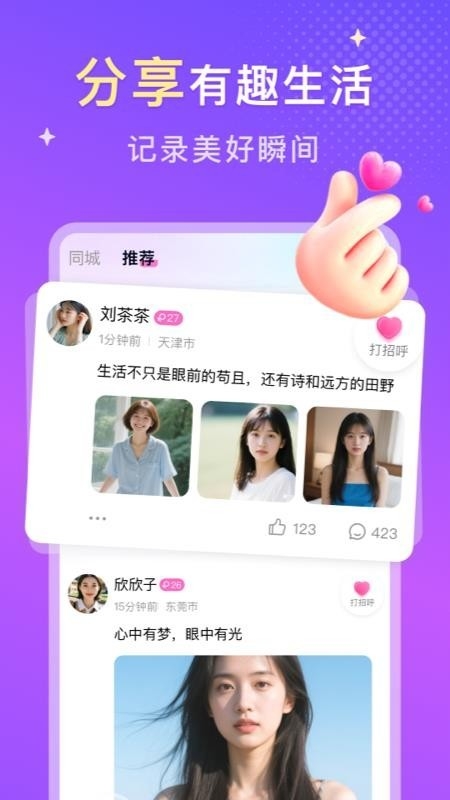 3、操作简单,用户可通过动态分享、打招呼等轻量化方式开启互动,降低社交门槛,适合不同社交风格的用户。