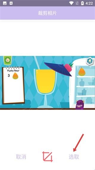 2、进入【裁剪相片】页面,对图片进行裁剪调整后,点击右下角【选取】按钮,进入图片的详细编辑界面。