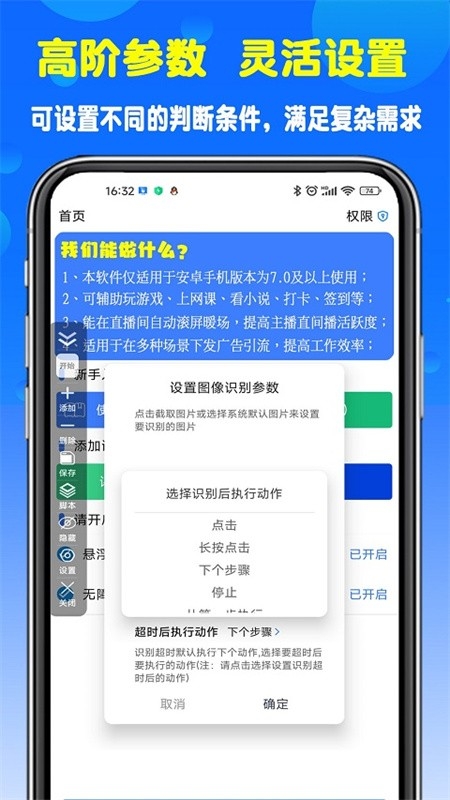 3、功能丰富,支持点击、滑动、返回、输入文字、识别文字、识别图片、截图等十余种功能;
