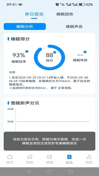 4、于报告页面,可获悉睡眠监测结果,以此查看自身睡眠状态是否达到标准。